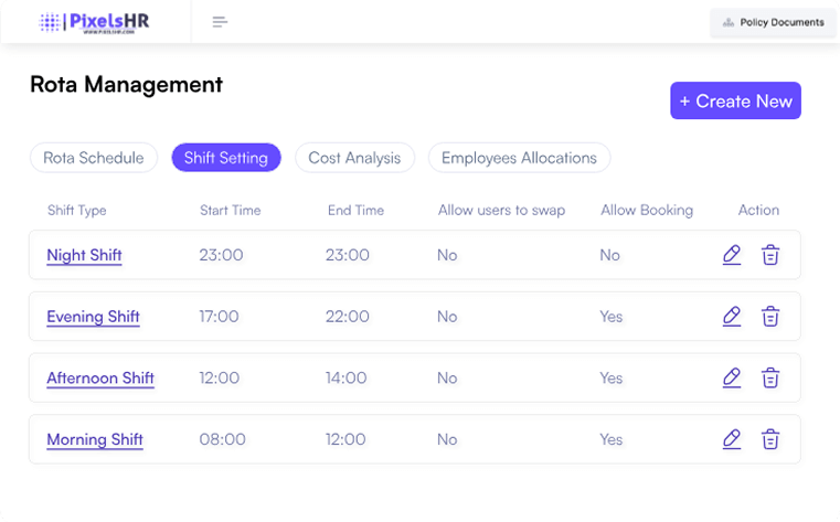 Craft perfect rotas with ease using PixelsHR’s Rota Management feature. Say goodbye to the headache of manual scheduling.