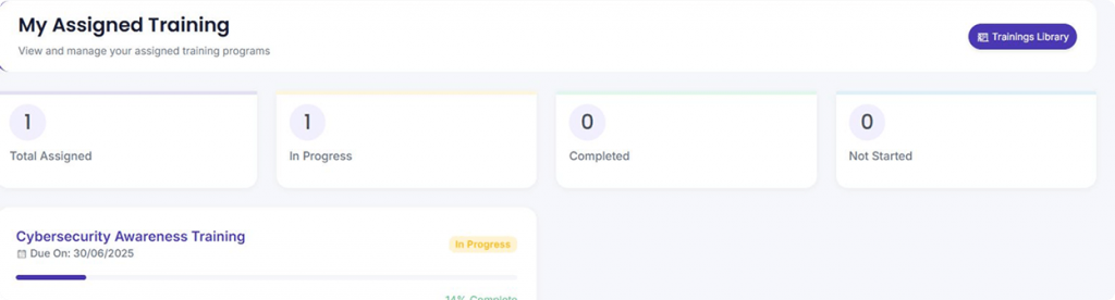 Easily monitor how your team is progressing—see who’s completed their training, who still has tasks to finish, and what needs attention. The compliance dashboard shows any areas that need improvement, so you can take action before it becomes an issue. Need to pull reports? It’s just a click away, making audits a breeze.