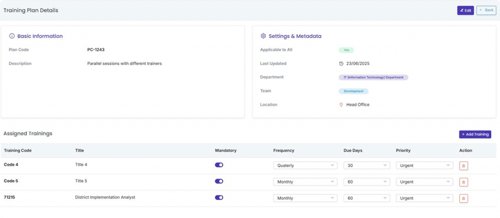 Allocate courses to individuals, teams, or entire departments in a click. Automated reminders keep everyone on schedule, while smart scheduling avoids calendar clashes. HR can view allocations in real time—no more spreadsheet chasing.